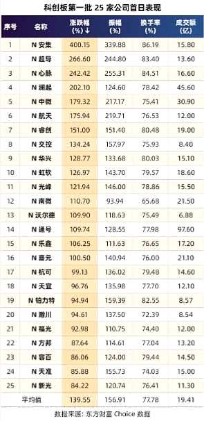 摘要: 萬(wàn)眾翹首期盼的科創(chuàng)板終于來(lái)了!7月17日首批25只科創(chuàng)板股票開(kāi)始在上交所交易,科創(chuàng)板正式開(kāi)市。截至收盤(pán),25家公司首日平均漲幅約140%,其中安集科技漲幅居首,大漲約400%。25家公司成交額合計(jì)48