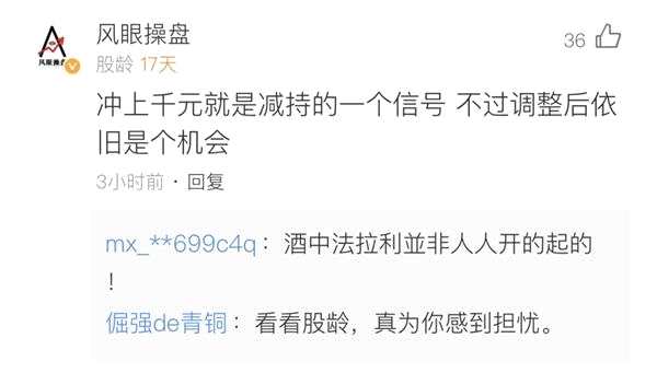 有網(wǎng)友稱:“沖上千元就是減持的信號(hào),不過調(diào)整后依舊是個(gè)機(jī)會(huì)?!?/p>