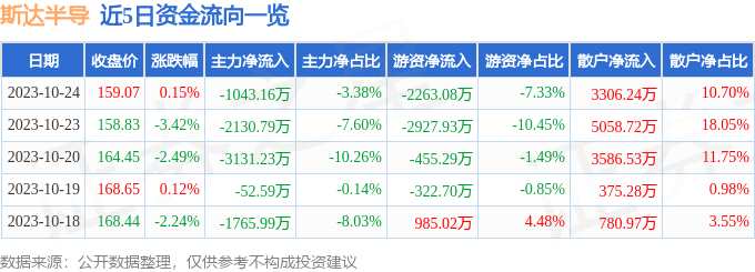 消息,截至2023年10月24日收盤,斯達(dá)半導(dǎo)(603290)報(bào)收于159.07元,上漲0.15%,換手率1.13%,成交量1.93萬手,成交額3.09億元。