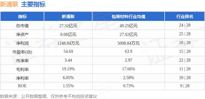 新通聯(lián)2025年一季報(bào)顯示,公司主營收入2.06億元,同比下降1.15%;歸母凈利潤1248.84萬元,同比上升2.78%;扣非凈利潤1212.26萬元,同比上升8.34%;負(fù)債率28.08%,投資收益12.62萬元,財(cái)務(wù)費(fèi)用71.44萬元,毛利率19.19%。新通聯(lián)(603022)主營業(yè)務(wù):從事輕型包裝產(chǎn)品與重型包裝產(chǎn)品的生產(chǎn)與銷售,并為客戶提供包裝產(chǎn)品研發(fā)設(shè)計(jì)、整體包裝方案優(yōu)化、第三方采購與包裝產(chǎn)品物流配送、供應(yīng)商庫存管理以及輔助包裝作業(yè)等包裝一體化服務(wù)。